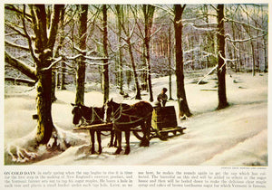 1938 Color Print Vermont USA New England Winter Forest Maple Syrup Horse XGGD5