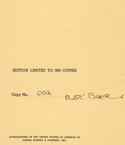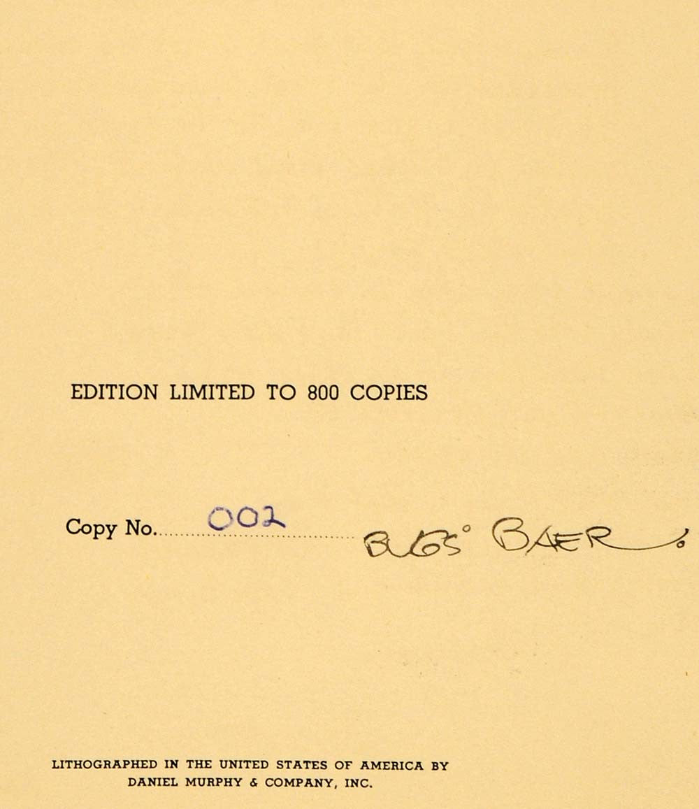 Period Paper is pleased to offer a delightful collection of lithographed caricatures of Hollywood celebrities of the 1930's. Each drawing by artist Henry Major is accompanied by a caption by humorist Arthur "Bugs" Baer. These are two-sided lithographs and we have chosen one side which is shown here. These are lithographs, not halftone prints. Published in 1938, this collection is copy no. 2 of a limited edition of 800 copies. We have included this provenance in our listing --please see the second image below the description. This collection will be of great interest to collectors of Hollywood movie memorabilia!