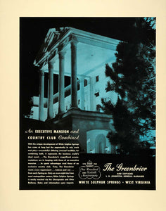 This is an original 1938 color print ad for The Greenbrier and Cottages at White Sulphur Springs, West Virginia.