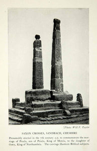This is an original 1938 monochrome halftone print of two saxon crosses from Sanbach, Cheshire. They would thought to have been erected in the 7th century to commemorate the union between Peada, Prince of Mercia, to the Princess of Northumbria and daughter of King Oswy.