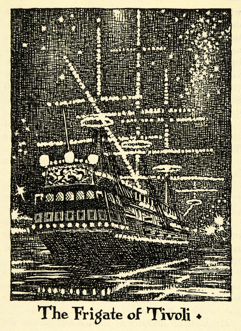 1938 Wood Engraving Frigate Tivoli Copenhagen Denmark Danmark Thornton XGG1