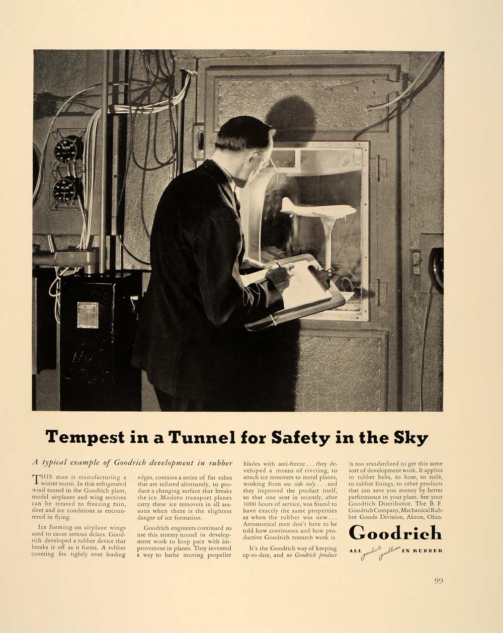 This is an original 1939 black and white print ad for the Mechanical Rubber Goods Division of The B. F. Goodrich Company of Akron, OH.