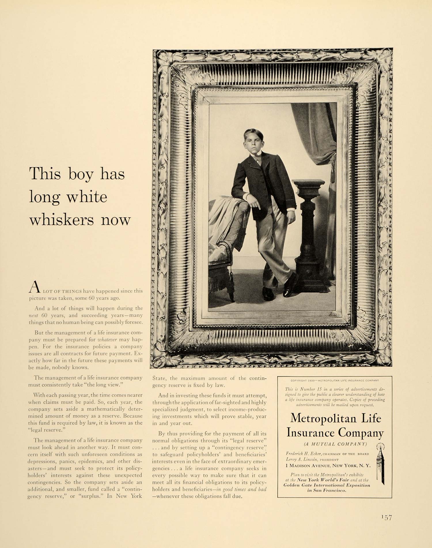 This is an original 1939 Great Depression Era black and white print ad for Metropolitan Life Insurance Company.
