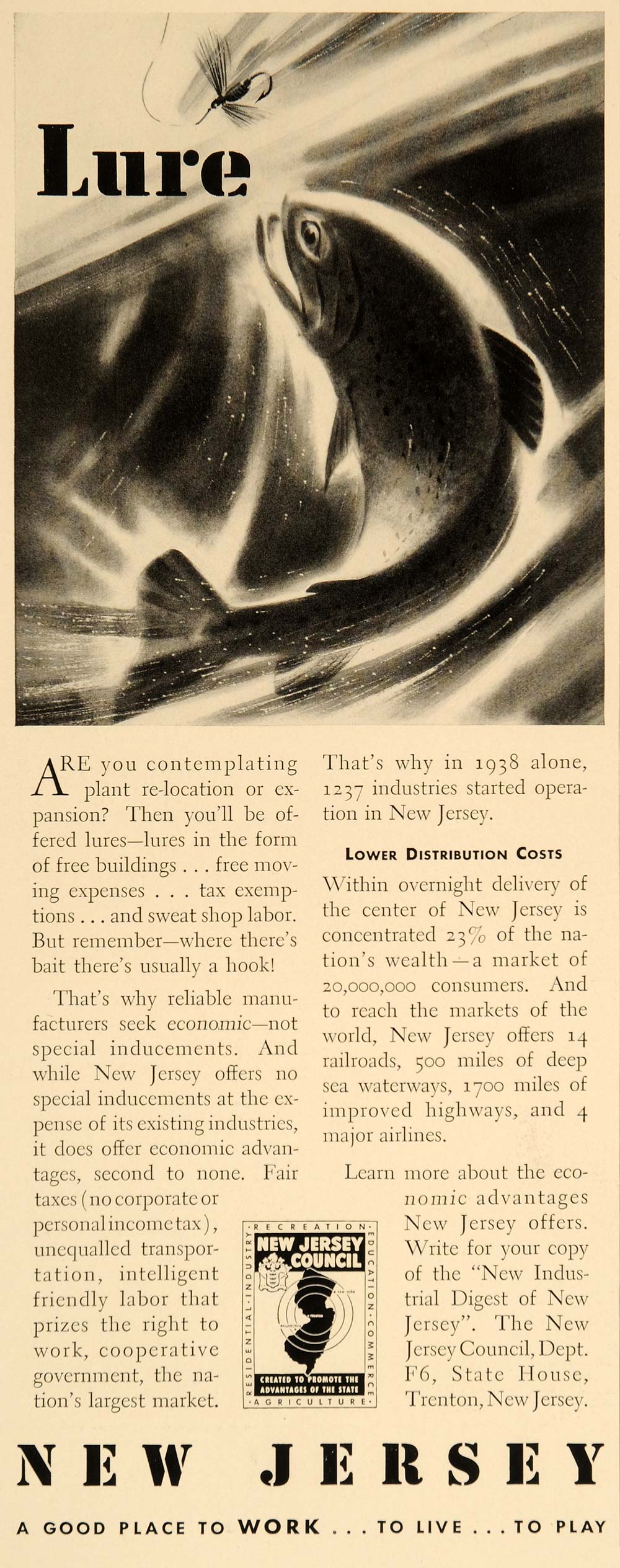 Keywords specific to this image: State of New Jersey, Fish, Fishing, Lure Vintage Advertising