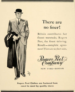 This is an original 1939 black and white print ad for Rogers Peet Company of Great Britain, with offices in New York and Boston.