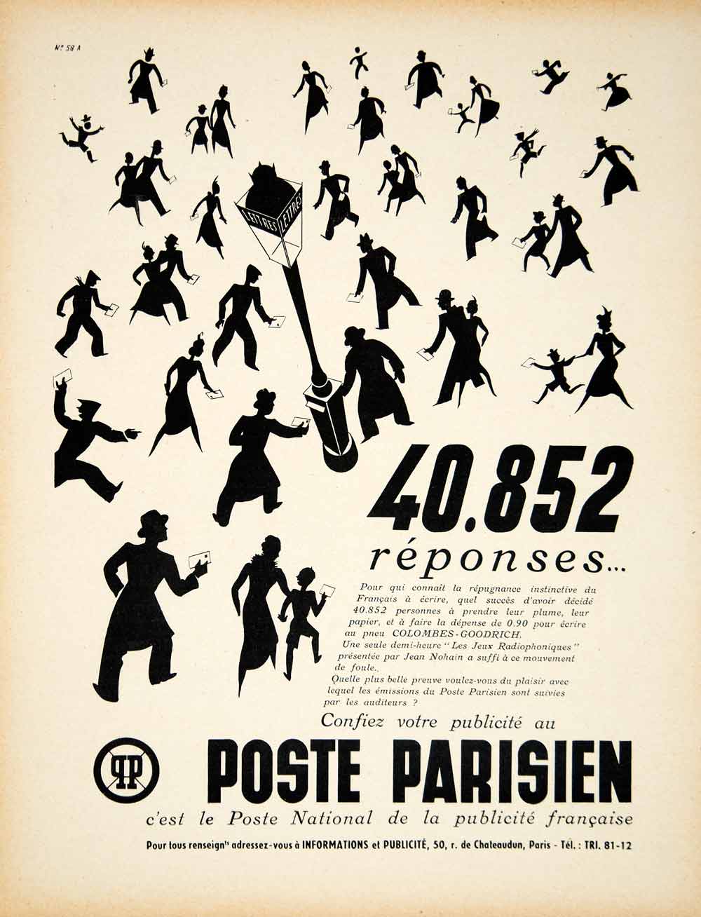 This is an original 1939 black and white French print ad for Poste Parisien, the French radio station.