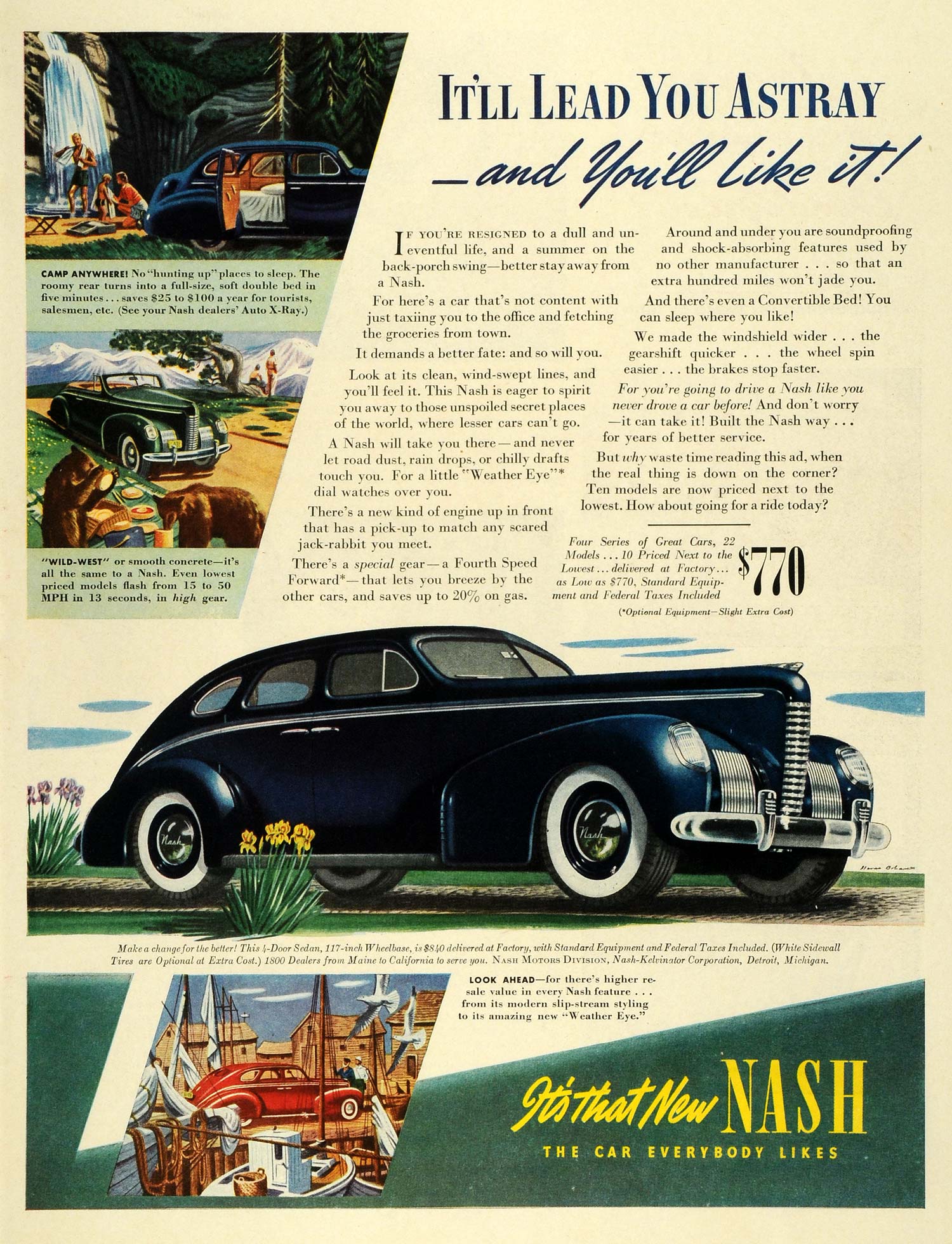 This is an original 1939 color print ad for Nash automobiles, a product line by the Nash-Kelvinator Corporation of Detroit, Michigan.