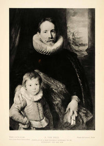 1939 Photogravure Anthony Van Dyck Portrait Father Son Child Costume Formal XAG5