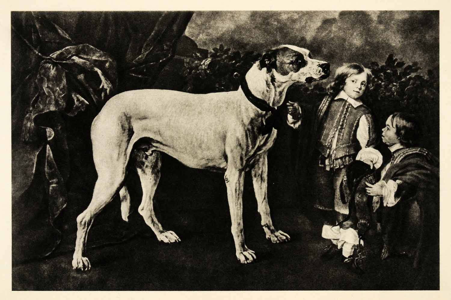 1939 Photogravure Jan Fyt Big Dog Dwarf Boy Child Pet Animal Canine Pet XAG5