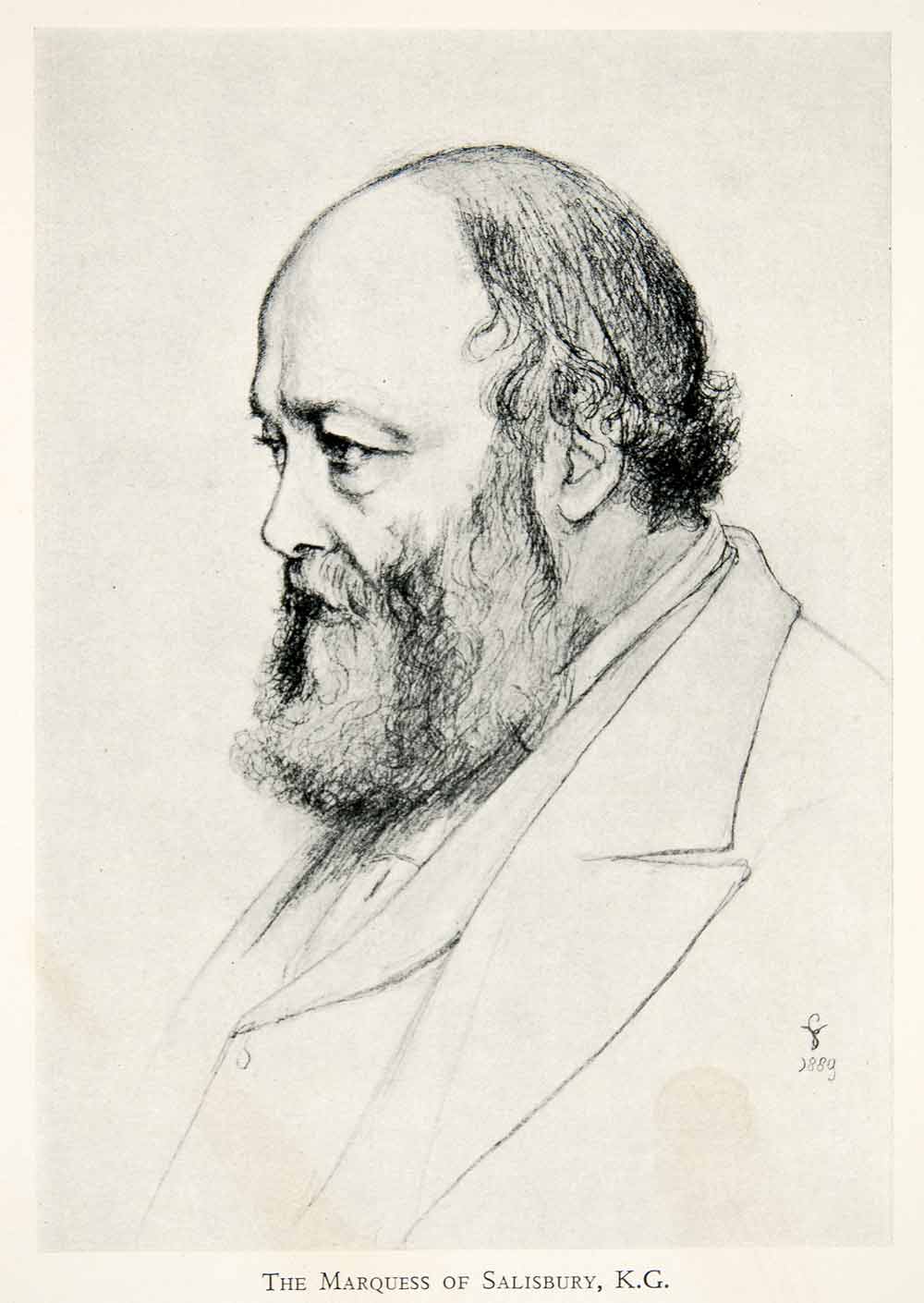 This is an original 1939 black and white halftone print of Robert Gascoyne-Cecil, who was the third Marquess of Salisbury.