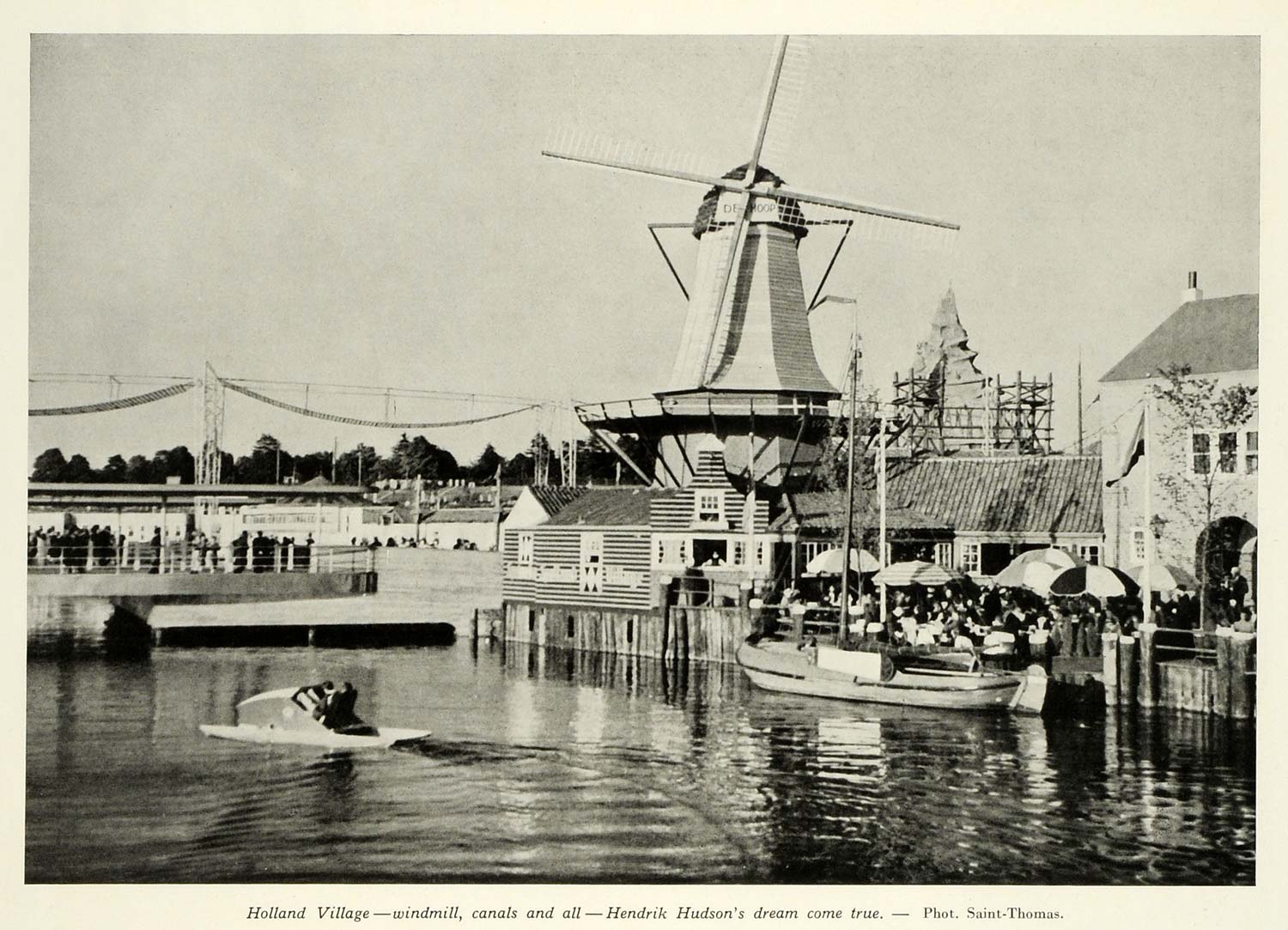 1939 Print New York World's Fair Holland Village Canal Windmill Netherlands ILL6