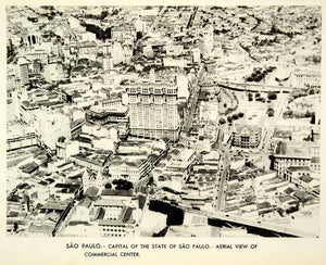 This is an original 1939 black and white rotogravure featuring an aerial view of the city of São Paulo incluiding the Centro Empresarial Nações Unidas, a commercial complex of São Paulo, Brazil.
