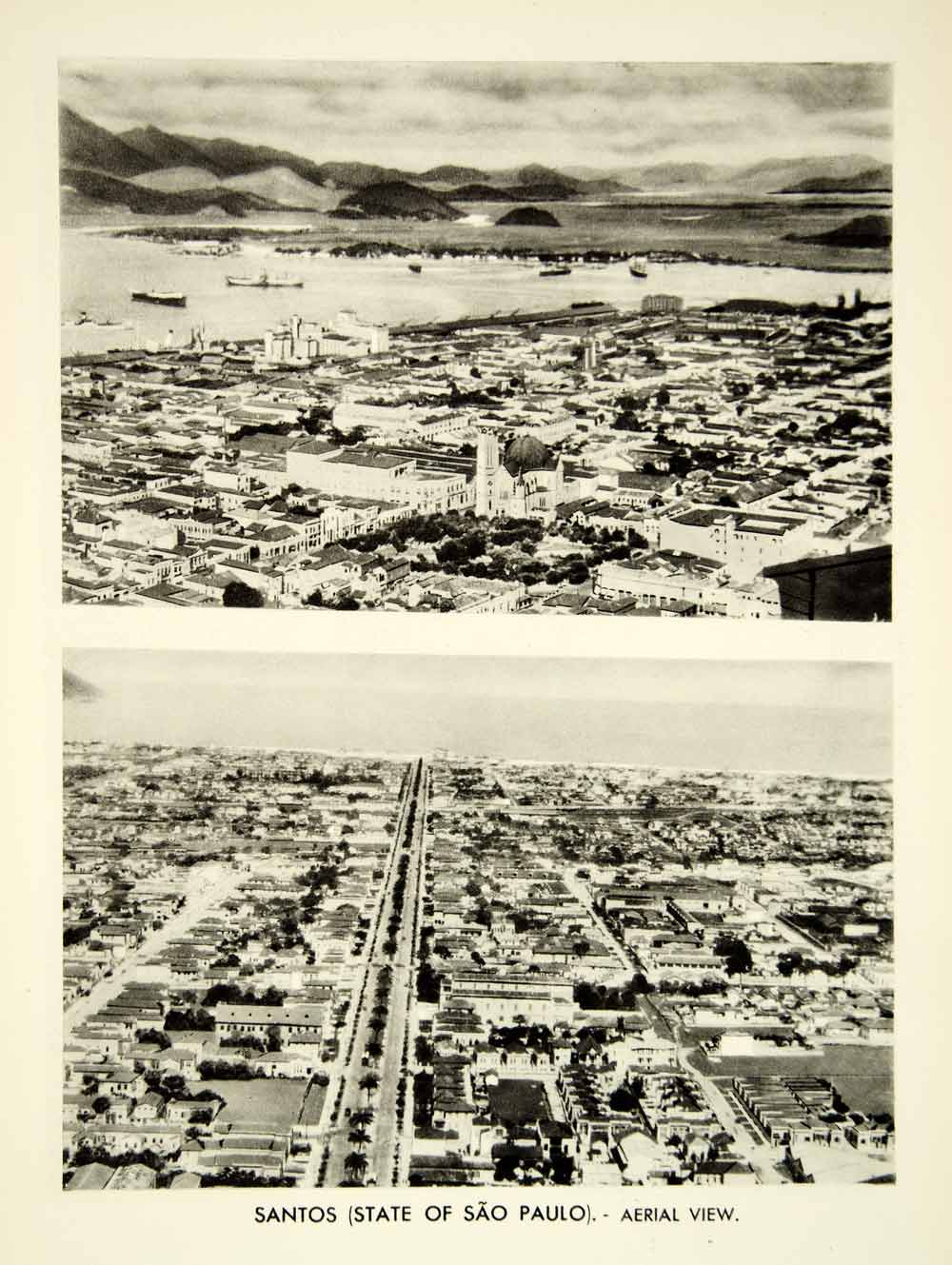 This is an original 1939 black and white rotogravure featuring an aerial view of the municipality of Santos in the state of São Paulo, Brazil.