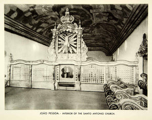 This is an original 1939 black and white rotogravure of the interior of the Saint Francis Church and Saint Anthony Convent (Santo Antonio Church) built in the Baroque Style located in the city of João Pessoa in the state of Paraíba, Brazil.