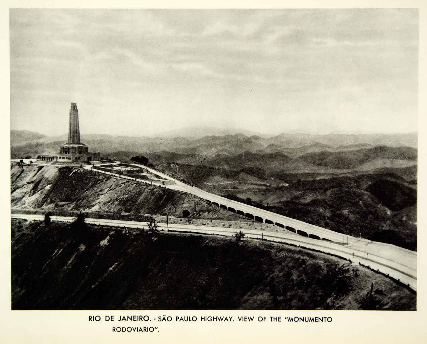 This is an original 1939 black and white rotogravure of the São Paulo Highway (Rodovia dos Imigrantes SP-160) and the Monumento Rodoviário da Rodovia Presidente Dutra, was a colossal monument located in the federal highway of Rodovia Presidente Dutra (BR-116 - SP-60) or Via Durtra which connects the city of São Paulo to the city of Rio de Janeiro in Brazil.