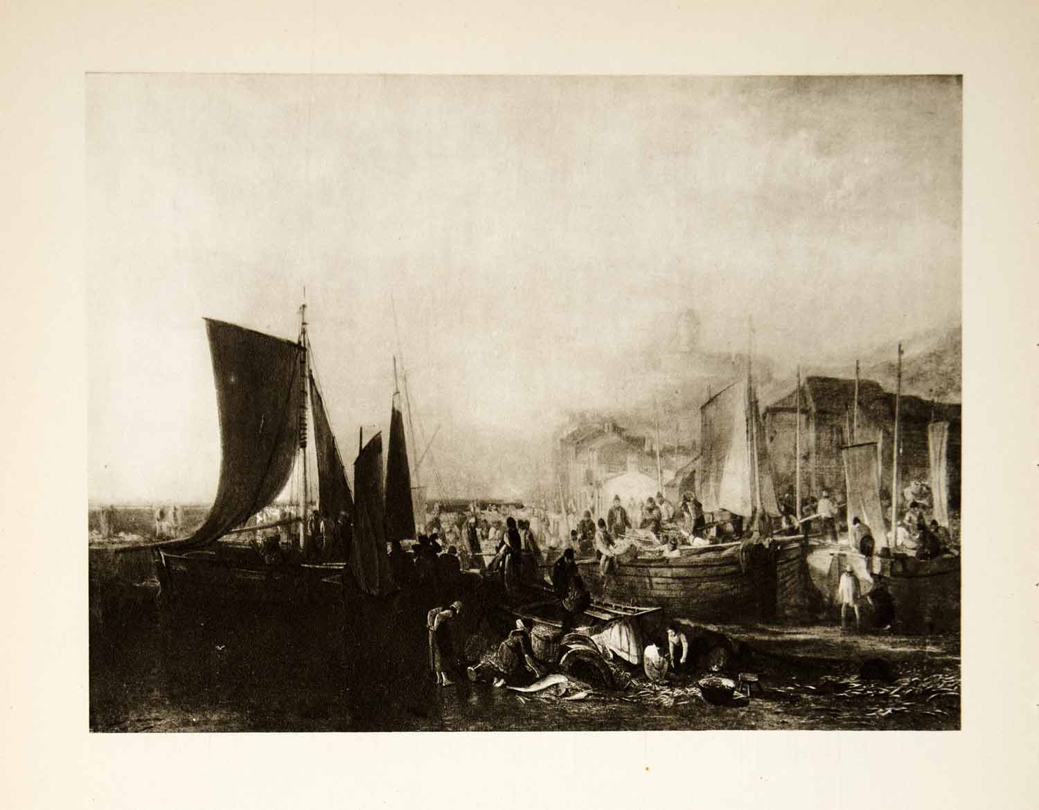 1939 Rotogravure Turner Saint Mawes Falmouth Harbor Cornwall England Boats XAW6