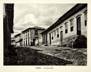 This is an original 1939 black and white rotogravure of a typical street in the municipality of Sabará in Minas Gerais, Brazil.