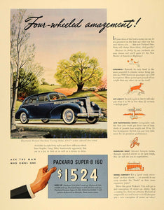 This is an original 1940 color print ad promoting the Packard One-Sixty Touring Sedan automobile. This is an excellent original print item for the collector of this vintage car.
