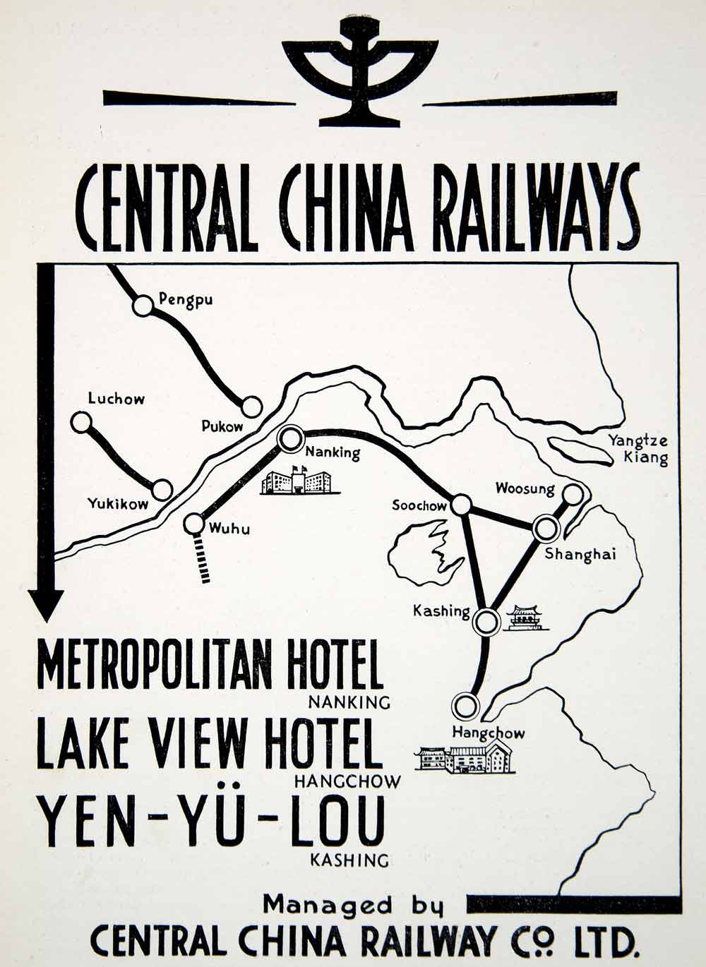 1940 Ad Central China Railway Train Route Yangtze River Nanking Shanghai GOE1