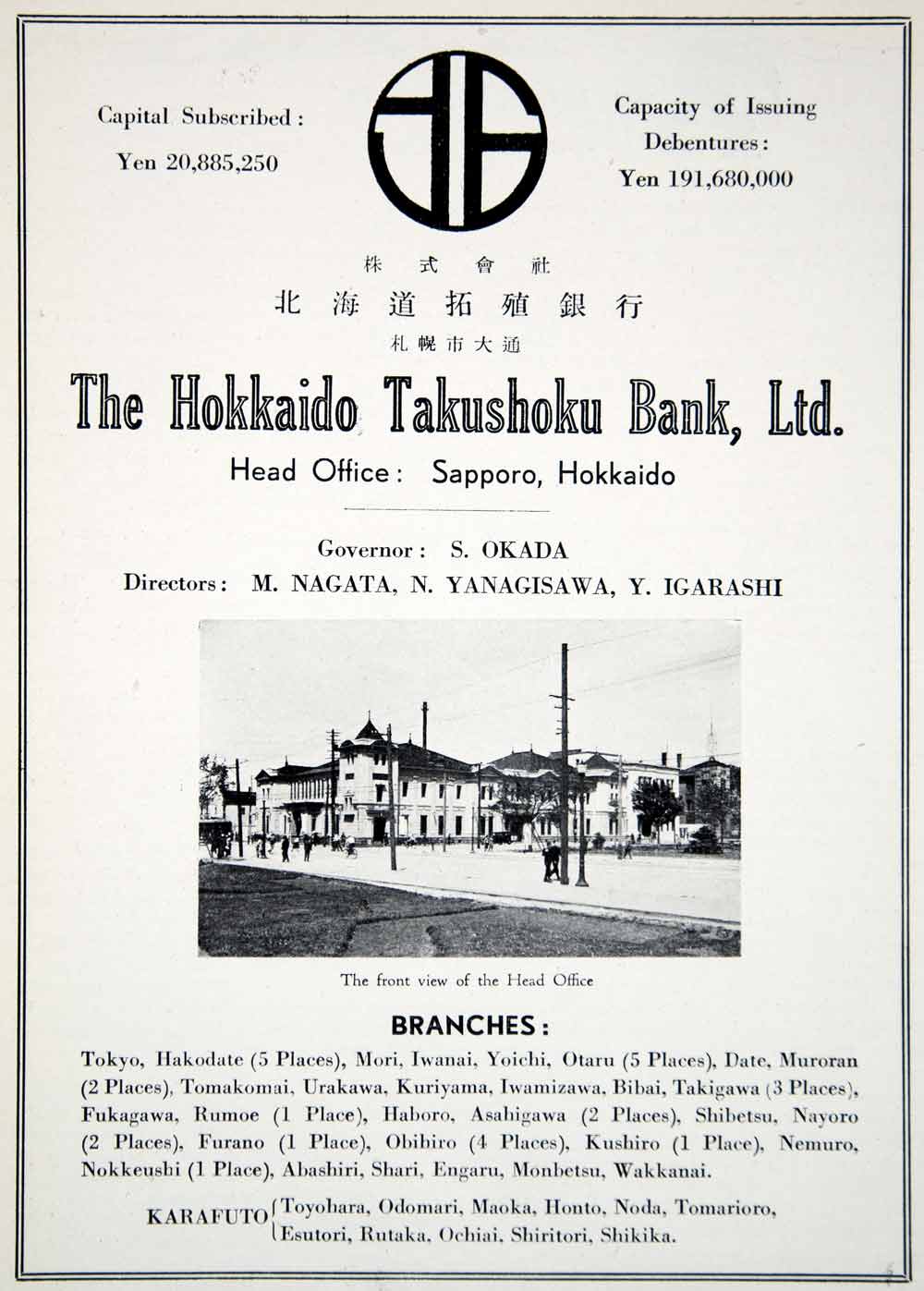 1940 Ad Hokkaido Takushoku Bank Ltd. Sapporo Office Building Japan Japanese GOE1
