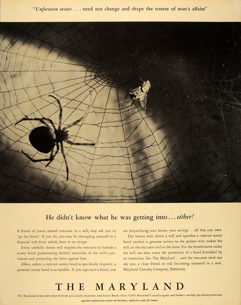 This is an original 1940 black and white print ad for the Maryland Casualty Company of Baltimore, Maryland.