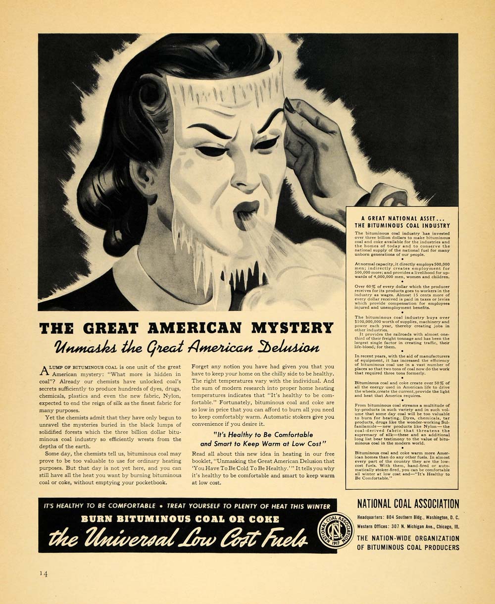 This is an original 1940 black and white print ad for the National Coal Association located in Washington, D. C.