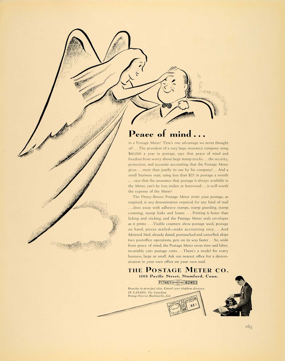 Keywords specific to this image: postage machine, stamp machine, mailing Vintage Advertising