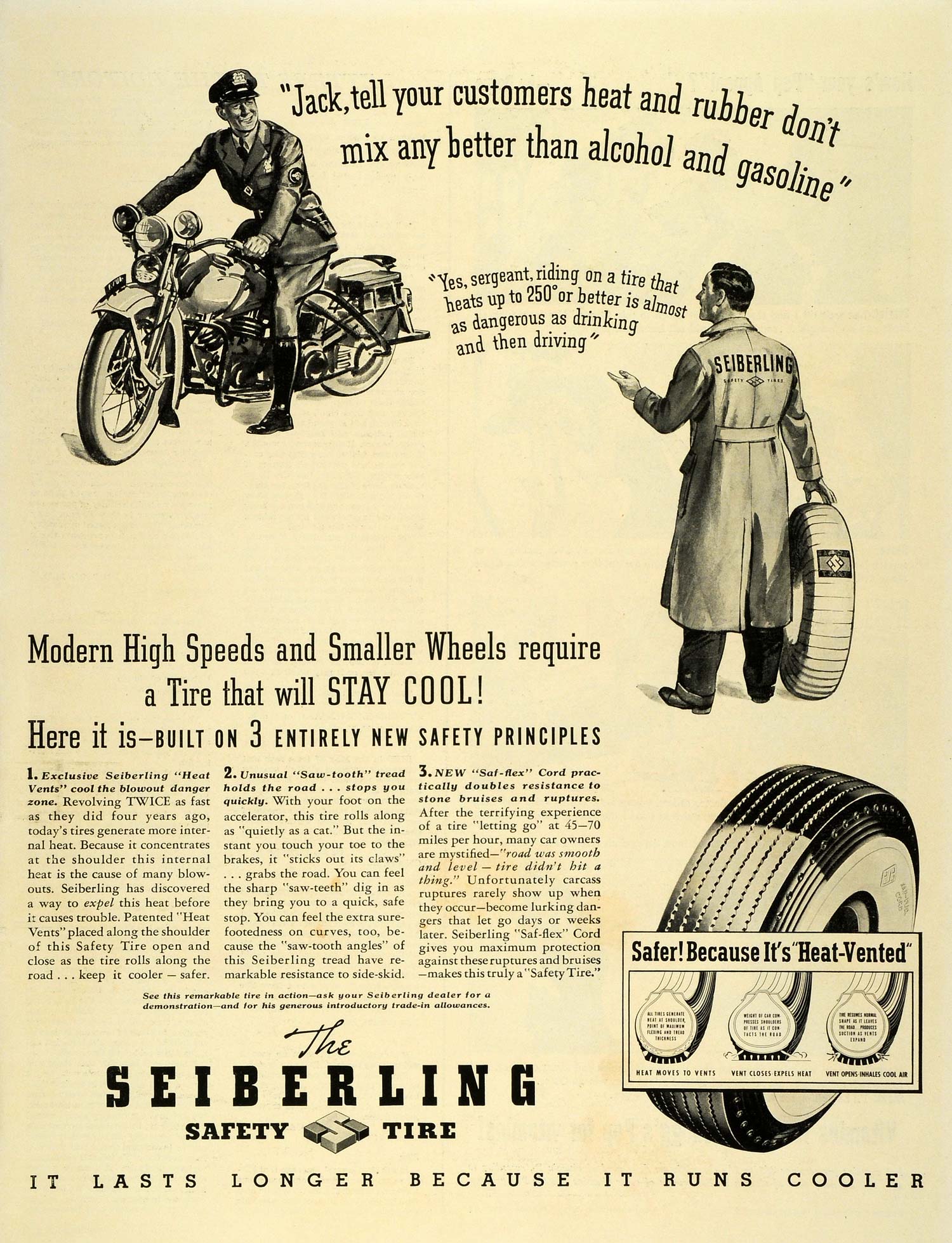 This is an original 1940 black and white print ad for the Seiberling Safety Tires and Siberling Saf-flex cord.