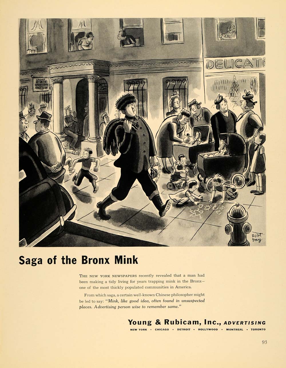 Keywords specific to this image: illustration, newspaper, advertisement, quote, mink Vintage Advertising