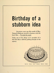 This is an original 1940 black and white print ad for the advertising agency of Young & Rubicam, Inc. on the 17th anniversary of the business.