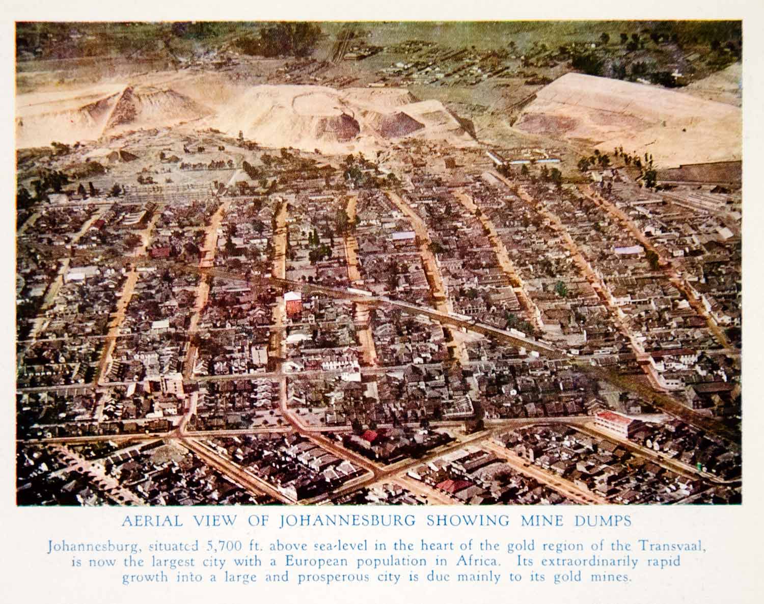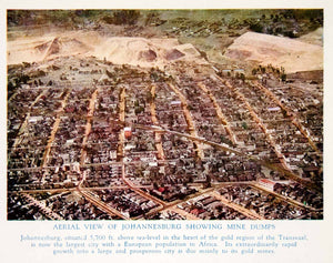 1940 Color Print Johannesburg South Africa Mine Dumps Historic Aerial View GOE1