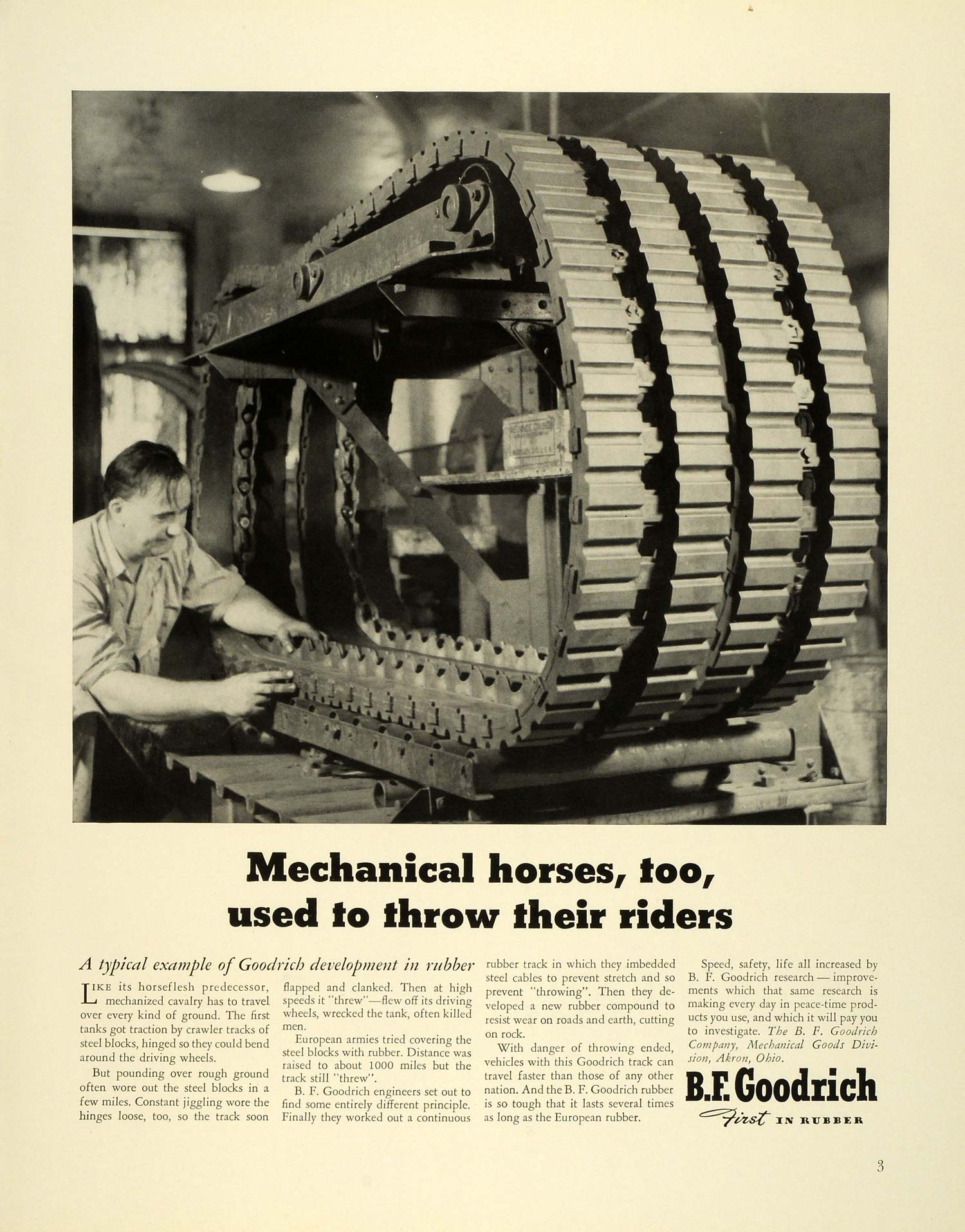 This is an original 1941 black and white print ad for The B. F. Goodrich Company, Mechanical Goods Division in Akron, Ohio.