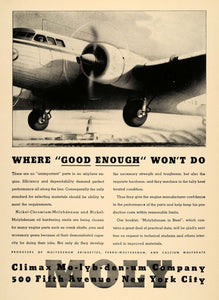 This is an original 1941 black and white print ad promoting the Nickel-Chromium-Molybdenum and Nickel-Molybdenum oil hardening steels from Climax Molybdenum Company located at 500 Fifth Avenue, New York.