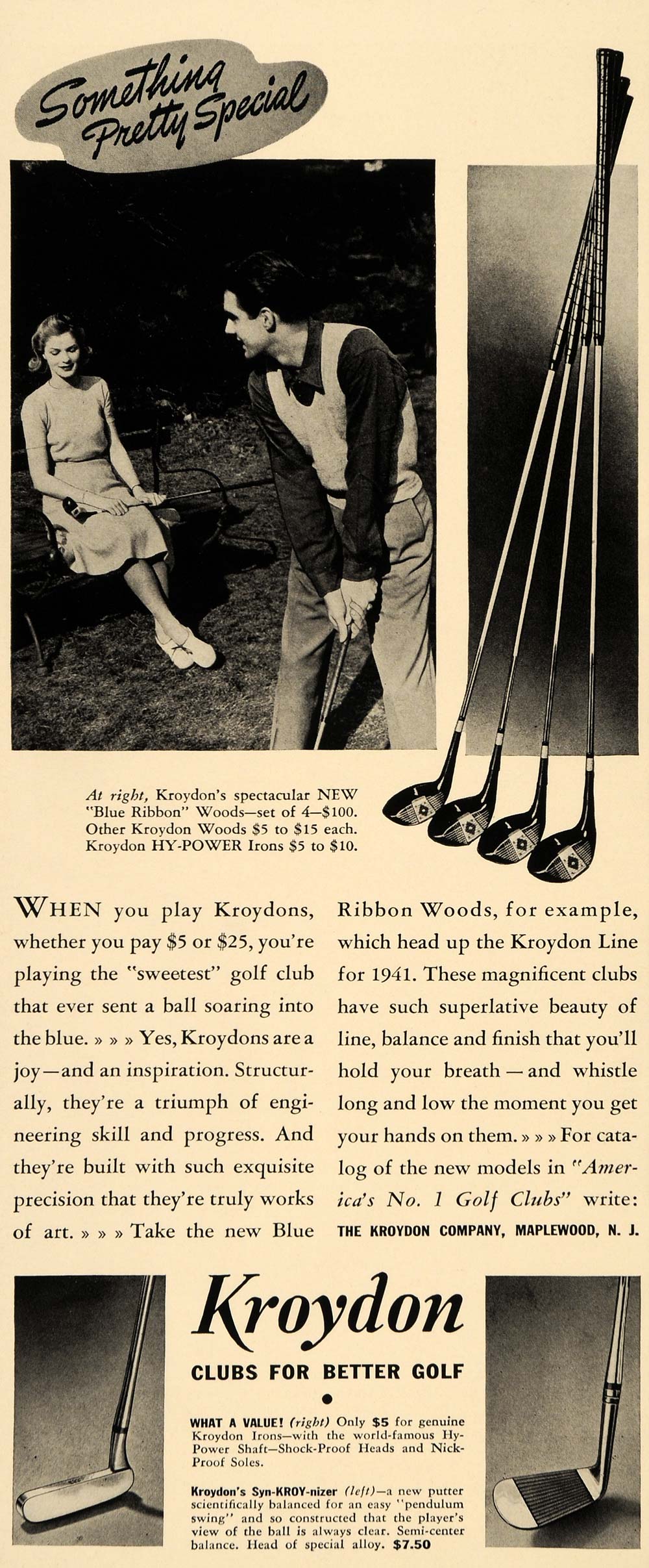 This is an original 1941 black and white print ad for Kroydon golf clubs from The Kroydon Company of Maplewood, New Jersey.