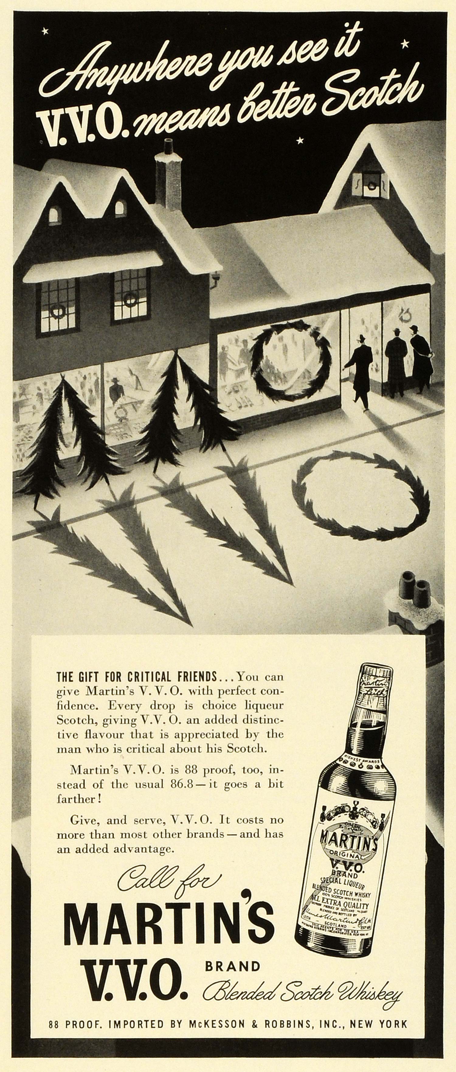 This is an original 1941 black and white print ad for Martin's V. V. O. Brand Blended Scotch Whiskey.