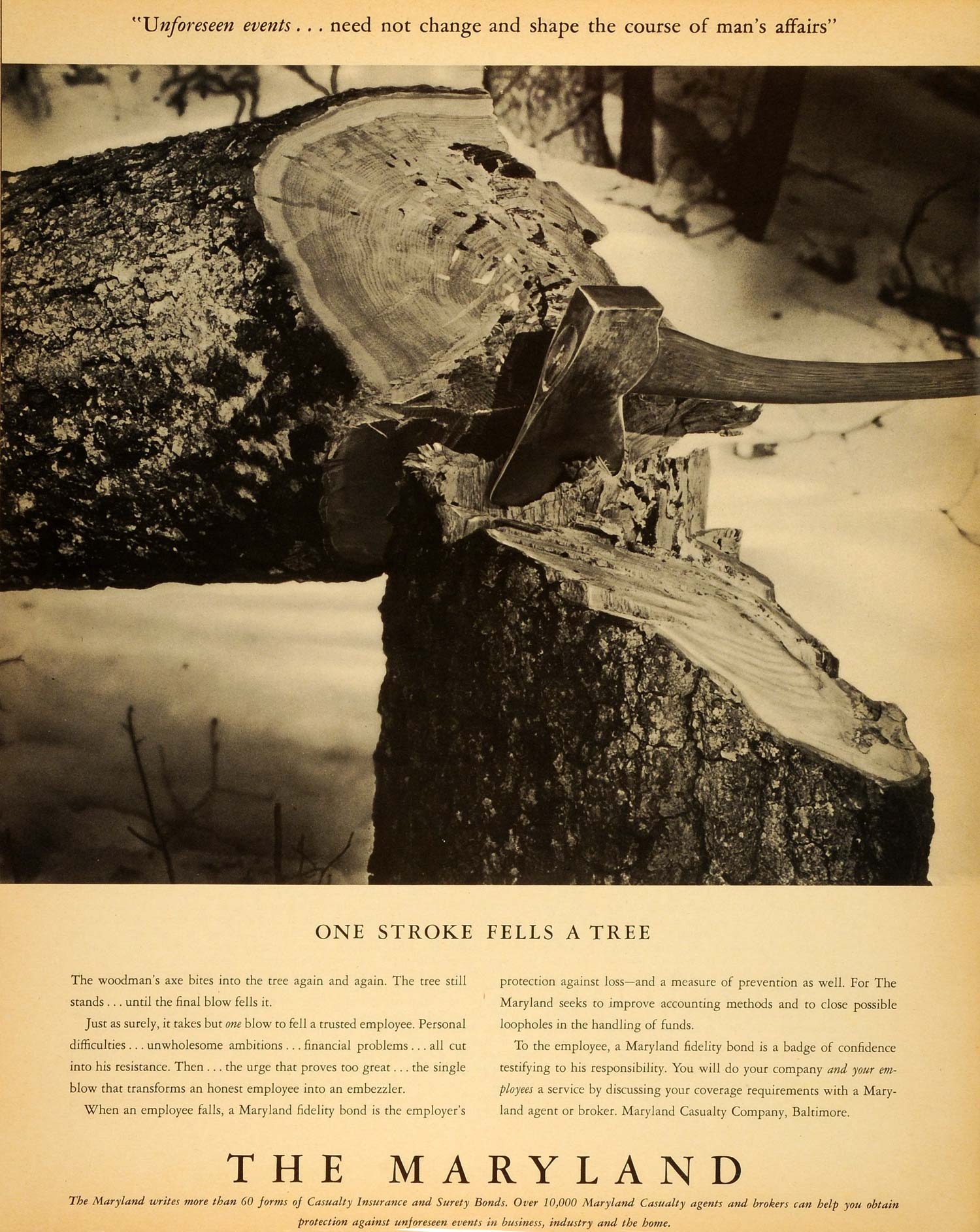 This is an original 1941 black and white print ad for the Maryland Casualty Company located in Baltimore, Maryland.