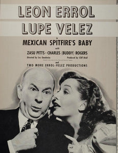 This is an original 1941 black andwhite promotional ad for the RKO film "Mexican Spitfire's Baby" directed by Les Goodwins, produced by Cliff Reid, and starring Leon Errol and Lupe Velez, with Zasu Pitts and Charles (Buddy) Rogers.