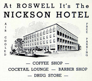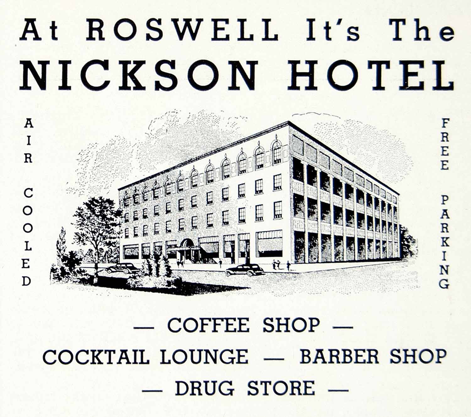 This is an original 1941 black and white print ad for the Nickson Hotel in Roswell, New Mexico.