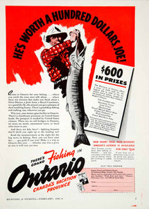 1941 Ad Ontario Canada Travel Tourism Bureau Fishing Sportsman Muskellunge YHF1