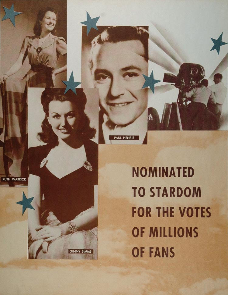 This is an original 1941 two color promotional ad for RKO actors Ruth Warrick, Paul Henrie, and Ginny Simms.