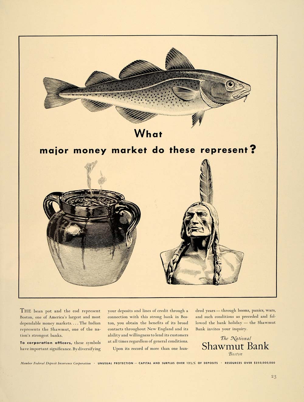 This is an original 1941 black and white print ad for The National Shawmut Bank of Boston.