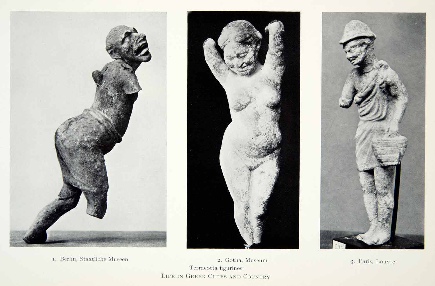 1941 Print Terracotta Figures Greek Artifact Nude Sculptures Statues XHE3