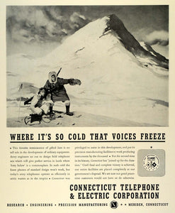This is an original 1942 World War II black and white print ad for the Connecticut Telephone and Electric Corporation in Meriden, Connecticut.