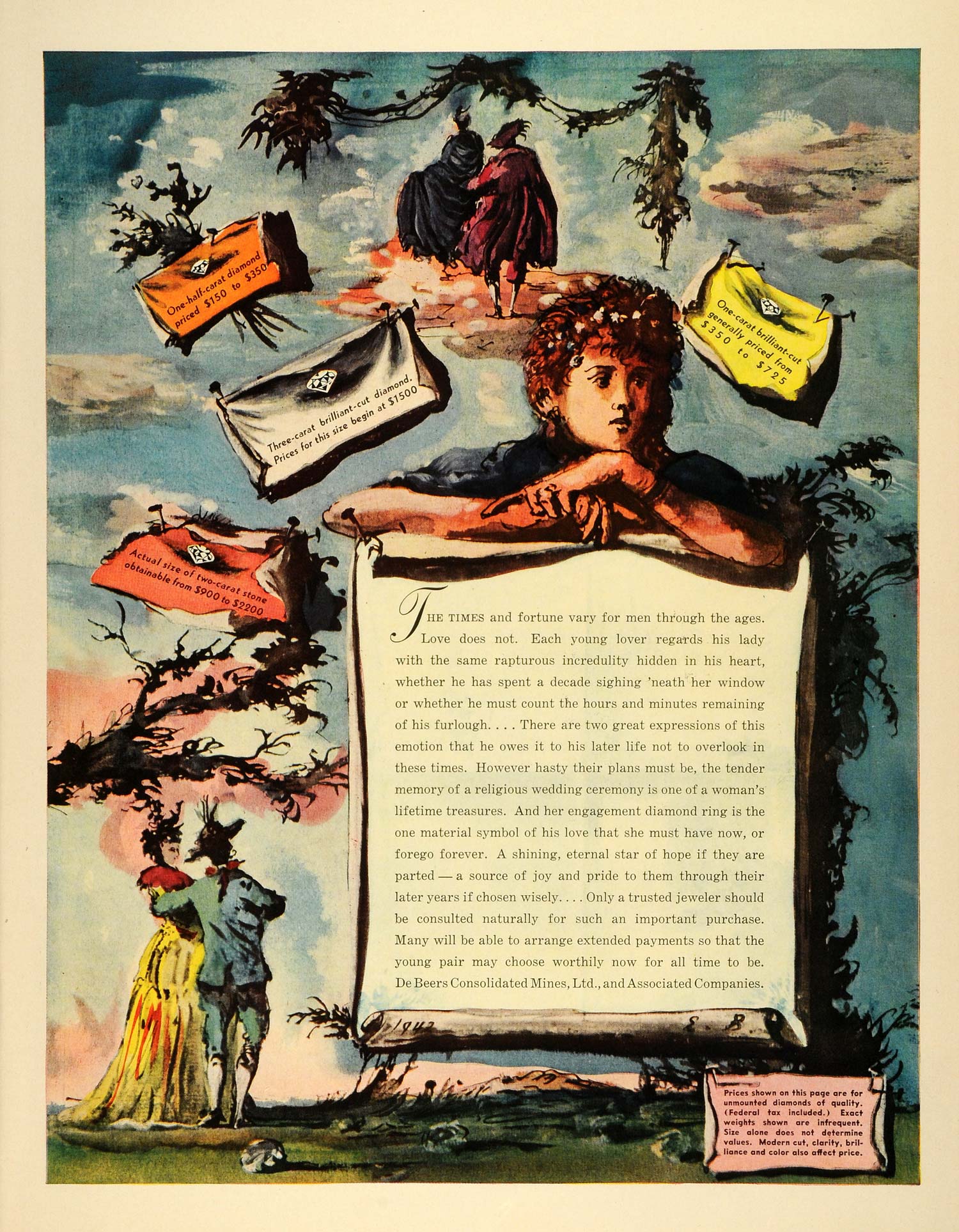 Keywords specific to this image: Vintage Advertising, lovers, wedding, jeweler, jewelry