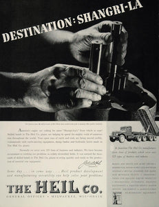 This is an original 1942 black and white wartime print ad from The Heil Co., of Milwaukee, Wisconsin. The ad has a halftone image of the skilled hands of Bill Maier.