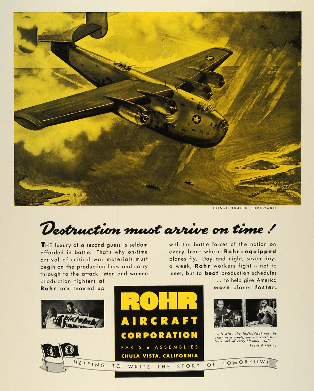1942 Ad Rohr Aircraft Rudyard Kipling Chula Vista WWII Consolidated Coronado FZ4
