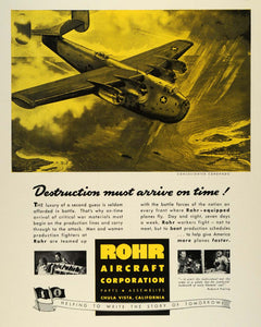 This is an original 1942 color print ad for Rohr-equipped planes by Rohr Aircraft Corporation of Chula Vista, California.