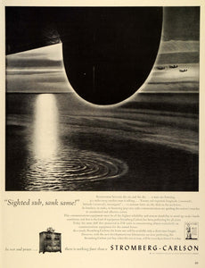 This is an original 1942 World War II black and white print ad for the Stromberg-Carlson FM radio, a product line by the Stromberg-Carlson Telephone Manufacturing Company.