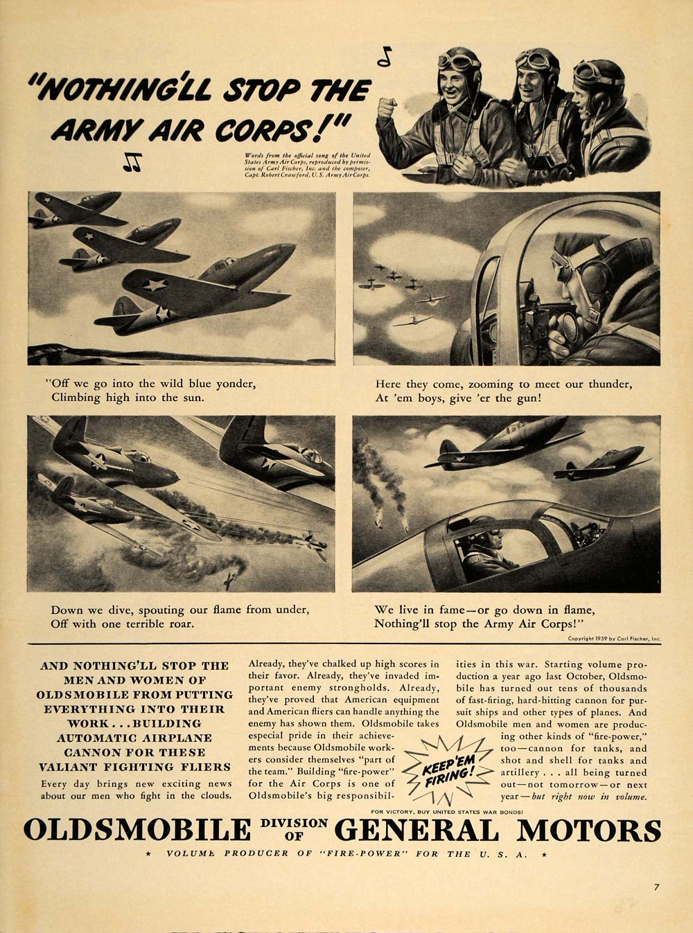 This is an original World War II era ad for the Oldsmobile Division of General Motors Corporation, maker of cannons for the Army Air Corps.