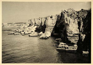 This is an original 1942 photogravure of the rocky coastline near Cascais, Portugal. Photography: Helga Glassner. (Please note that there is printing on the reverse.)